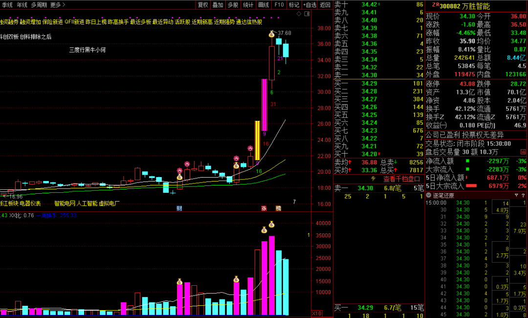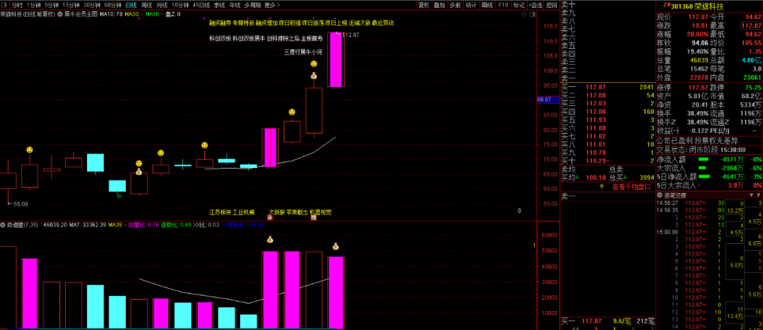 周一:5月15日,盘面上,特高压及充电桩表现蛮好。国防军工也有表现:祥明智能(301226),英可瑞(300713),万胜智能(300882),中船汉光(300847)表现不错。而主板仅有杭州热电(605011)在响应消息面。上述表现不错的个股均在好位置之上,提前有资金异动并促成好位置、好形态。新上市的三博脑科(301293)强势行情的产生,同样源于前几天的资金投放。
