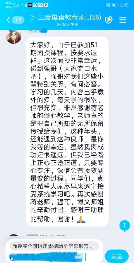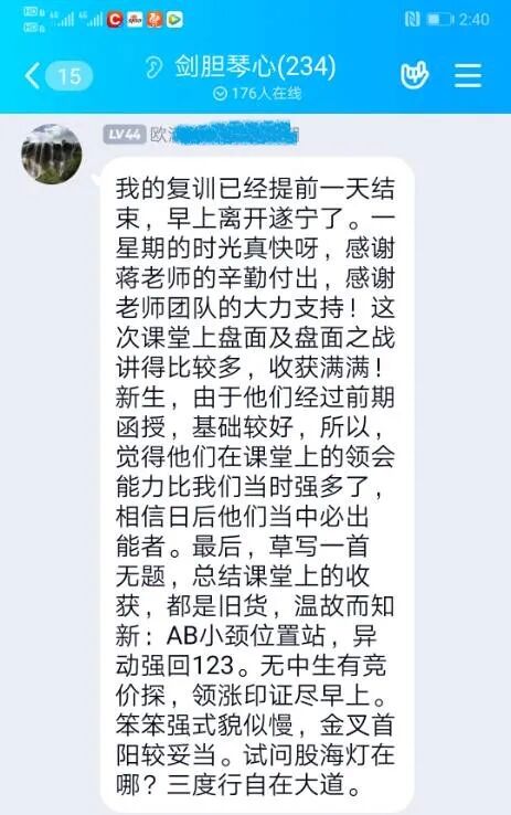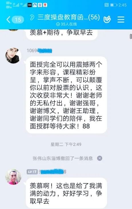 面授完全可以用震撼两个字来形容,课程精彩纷呈,掌声不断,可以颠覆你以前对股票的认识,这次收获非常大!