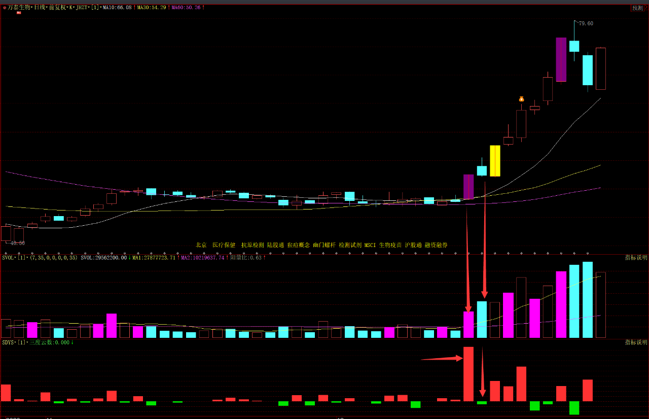 万泰生物 (603392)12月15日涨停板A区略微放量,而三度云数呈现天量,这是经典中阳大云数,再加上次日的大阴背离,经典加上经典更为经典。